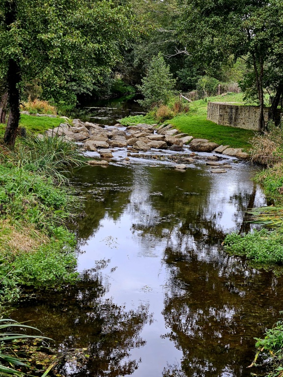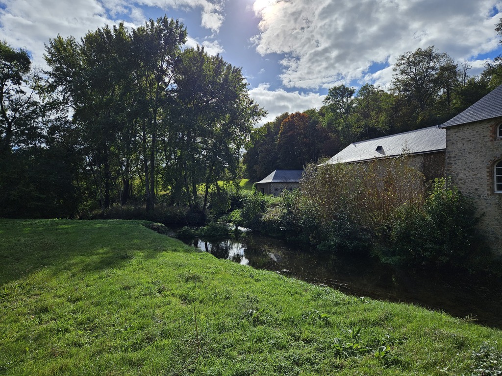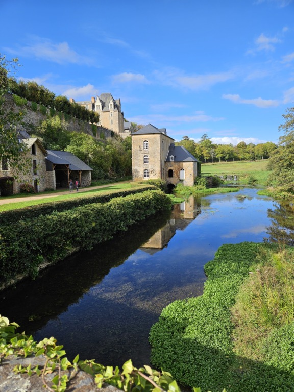 Saulges, village labellisé Petite cité de Caractère est perché sur un éperon rocheux depuis le VIIIe siècle. Nous traversons des sentiers au cœur d’un site Natura 2000. La vallée de l’Erve est un endroit calme et verdoyant où certains s’adonnent à l’escalade.