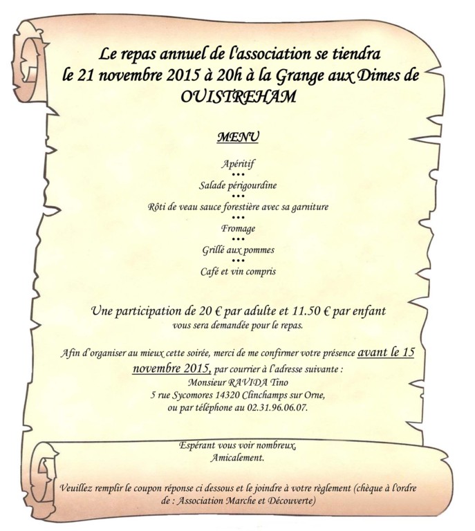 Le samedi 21 novembre aura lieu le traditionnel repas annuel .