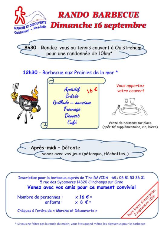 Barbecue aux prairies de la mer à 12h30, Jeux et détente l’après-midi.