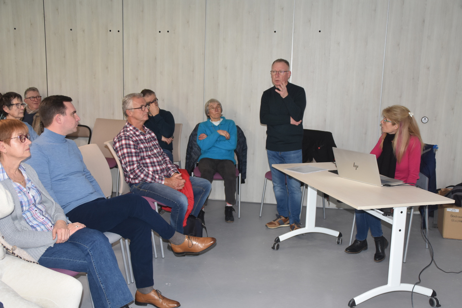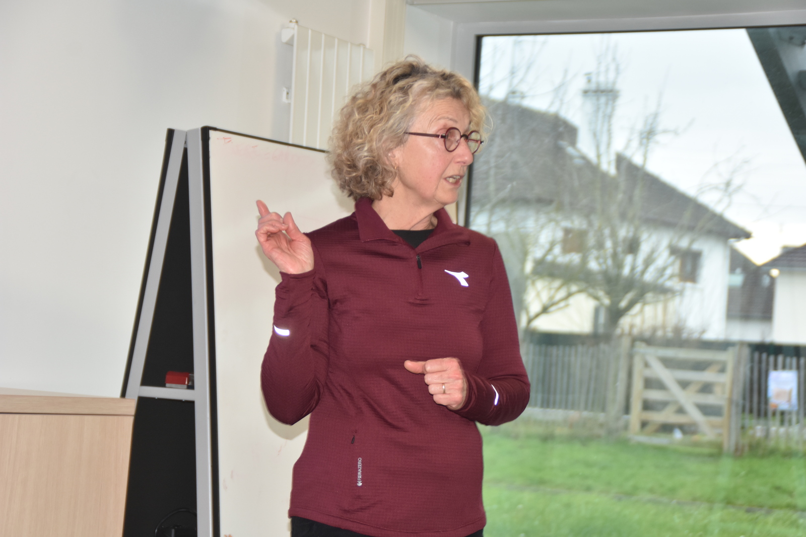 Séance étirements après la sortie de marche nordique à Louvigny